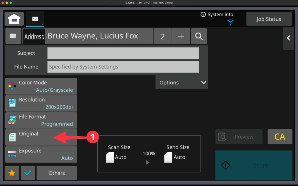 At Platinum Copier Solutions we set all of our new copiers up with the same configuration that makes the Sharp system the most user-friendly. This involves changing the Home Screen buttons’ functions to increase the productivity from the out-of-the-box configuration. Part of that process involves changing the Scan function. If your screen doesn’t match the instructions below, try starting from the Address Book button, if you have that on your screen.